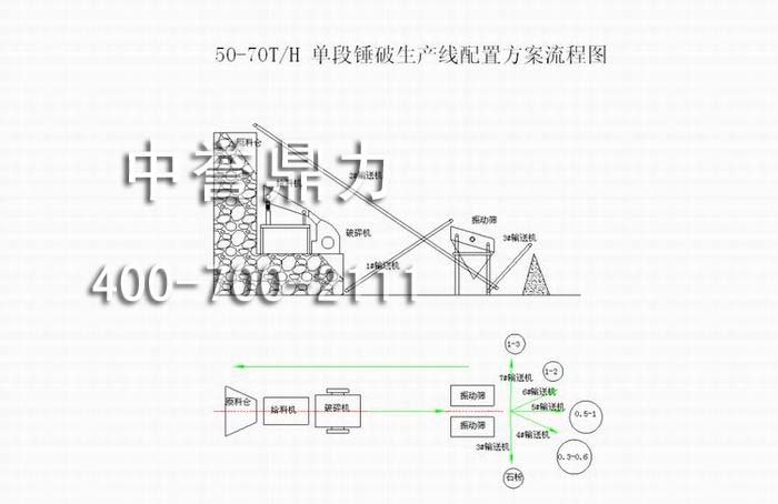 PC0706錘式破碎機時產50噸石料生產線配置方案